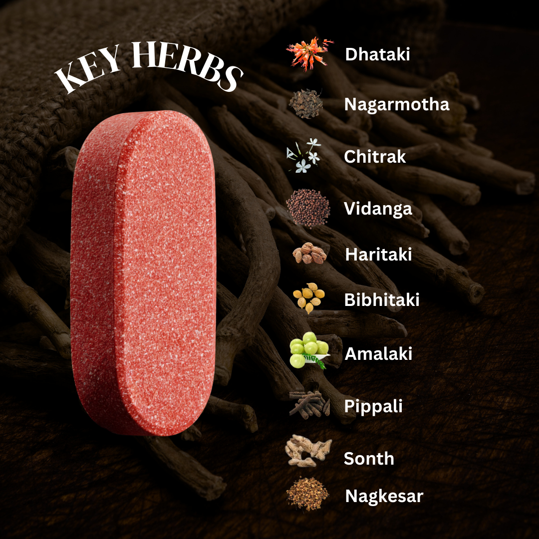 Ingredients such as Punarnava, Pippali, Giloy, and Vidanga assist in improving blood quality, enhancing iron assimilation, and reducing general weakness associated with anaemia.